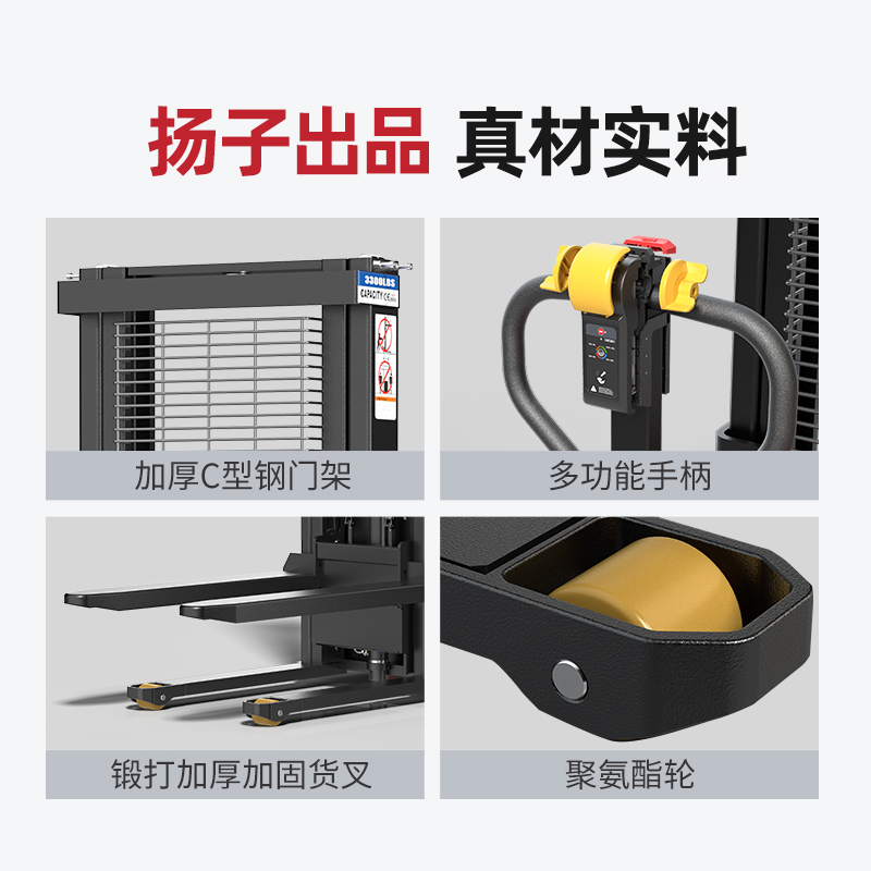 步行式全電動堆高車QDA:承載實(shí)力派全電動堆高叉車,多功能手柄人體工學(xué)設(shè)計(jì),加厚c型鋼門架更為穩(wěn)定更方便。玻璃鋼外罩,美觀大氣還安全。輕松爬坡還耐用。