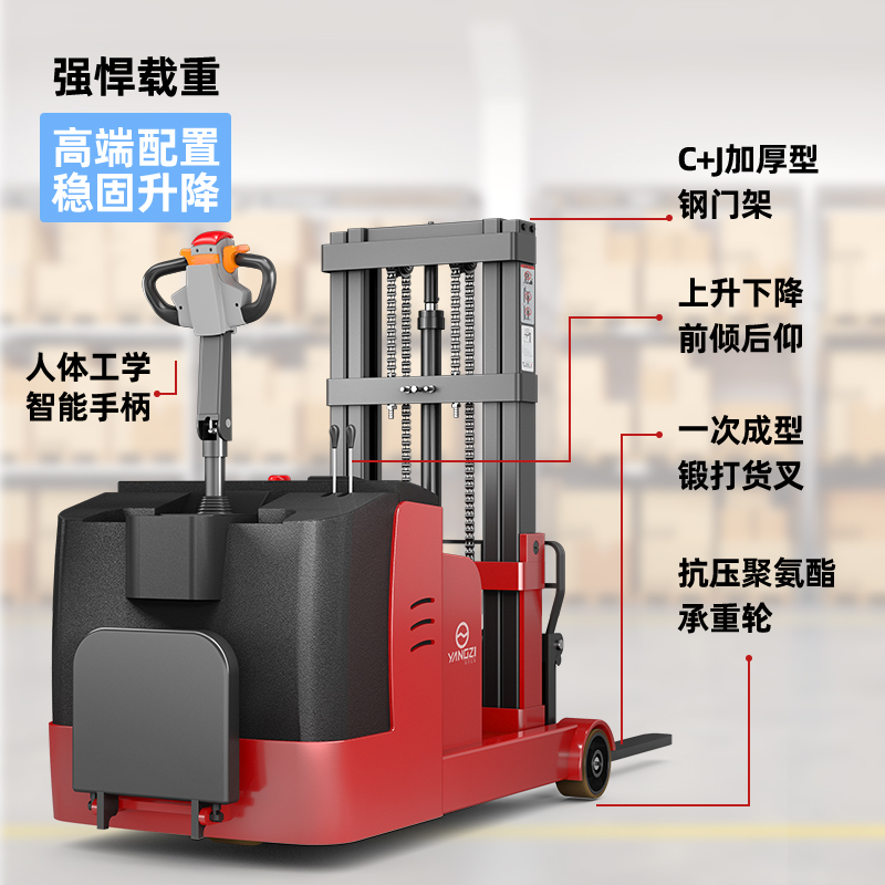 揚(yáng)子堆高車CPD10:整車是噴塑烤漆,一體鍛打貨叉,加大前輪設(shè)計(jì),強(qiáng)勁高效,永磁電機(jī),操作便捷,緊急制動(dòng),不挑托盤的叉車,可調(diào)節(jié)貨叉更方便。
